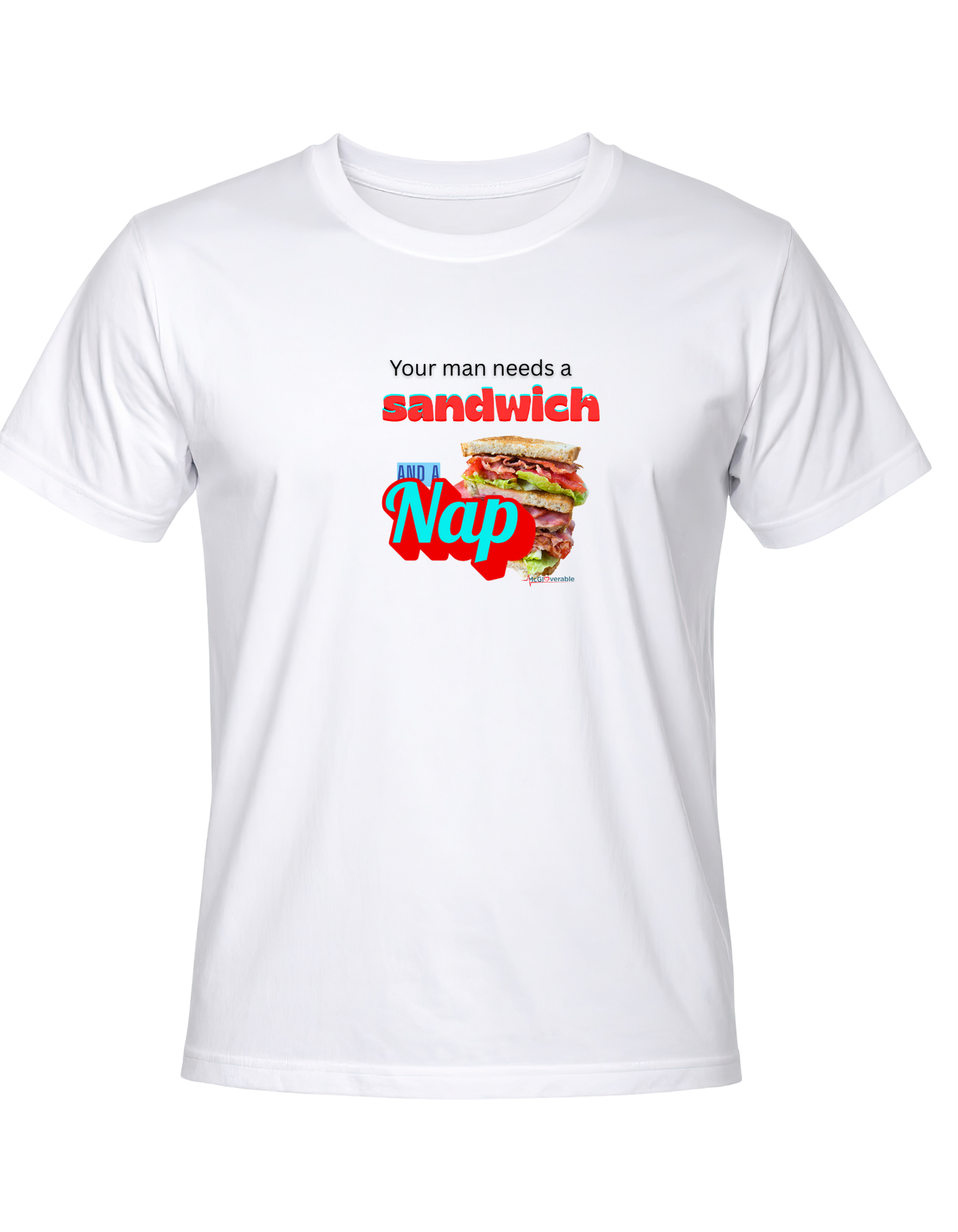 Your man needs a sandwich and a nap T-Shirt. Made in the US.